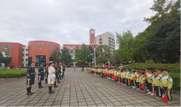 2025年10月13日上午,西华大学幼儿园大班的孩子们在老师带领下,走进西华大学国旗护卫队训练场,开展了一场以“仰望国旗·童心爱国”为主题的实地参观活动。