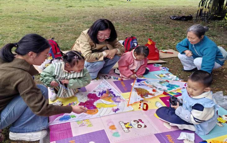 活动当天,伴随着欢快的旋律,全体师幼与家长共跳热身舞蹈《春天在哪里》,孩子们跟着节奏摇摆身体,家长们融入其中,亲子间默契互动,灵动的舞姿灿烂的笑容,将春日的生机与活力尽情展现。随后,孩子们在老师的组织下拿出颜料和画笔开始绘制风筝,家长与孩子合作涂鸦、一起互动,把对春天的喜爱和彼此的温馨有爱都画进了风筝里,一只只风筝在小手中“活”了起来。他们拿着自己的作品一起迎着春风奔跑,手中的线越放越长,它们在空中相互追逐、嬉戏,与蓝天白云构成了一幅美丽的春日画卷。活动现场,老师们还组织开展了各类趣味游戏和亲子活动,不仅锻炼了孩子们的体魄,更增进了对团队合作精神的理解。