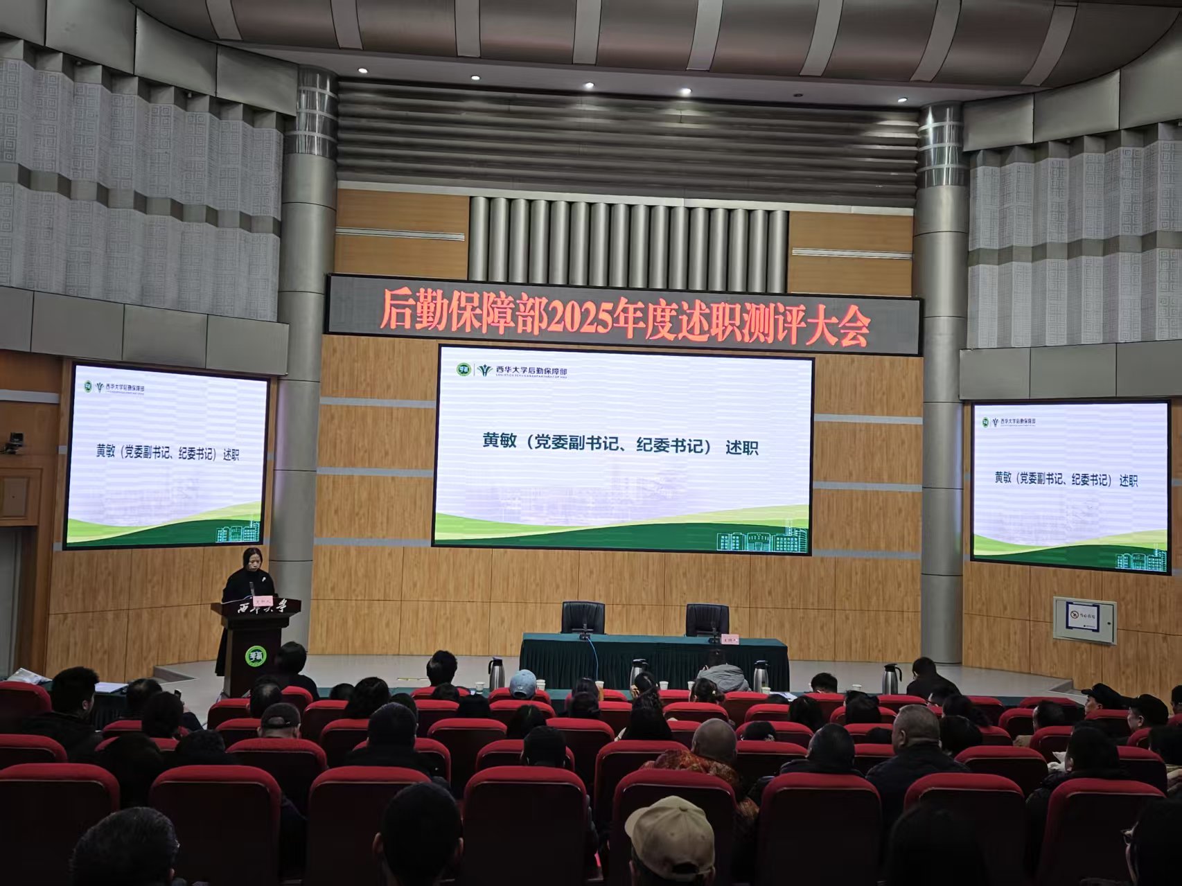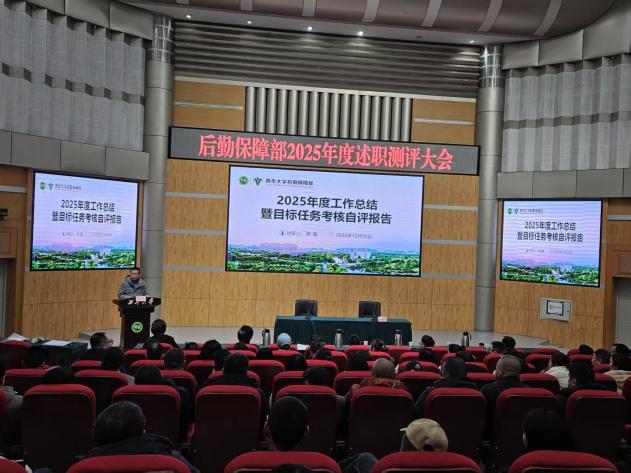 2025年12月30日,后勤保障部在四教报告厅召开2025年度述职测评大会。后保部领导班子、各中心负责人、各中心教职工代表参加会议。述职测评大会由后保部党政办主任谭佳主持。